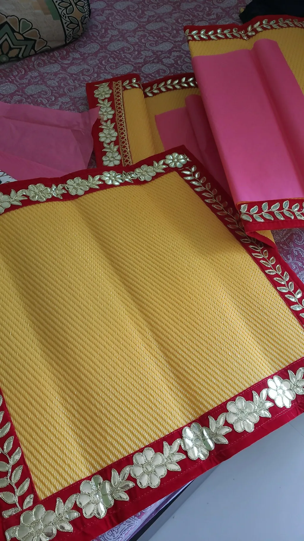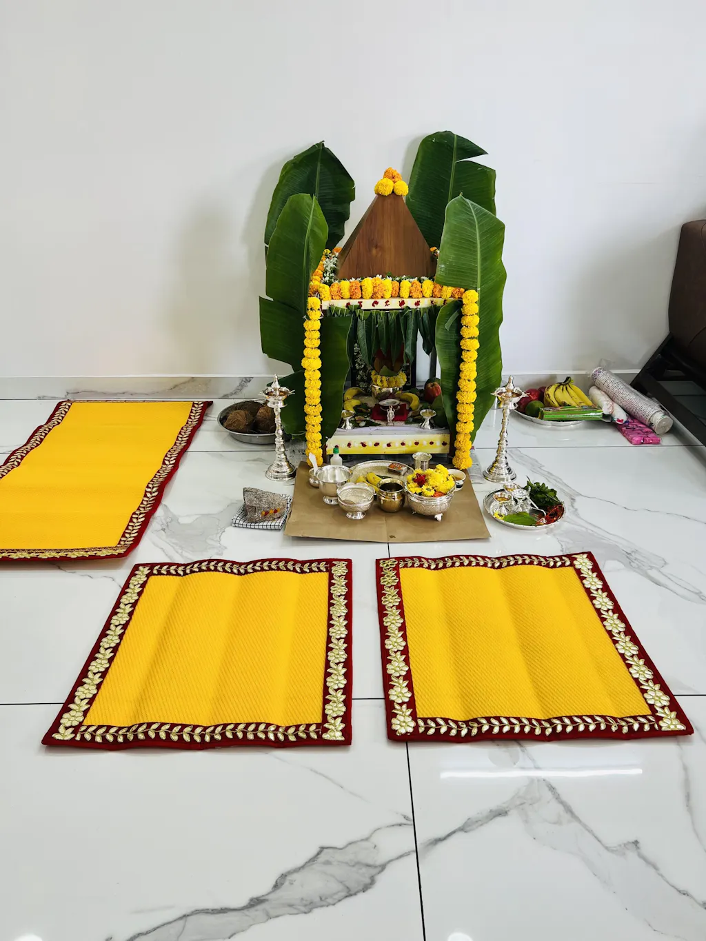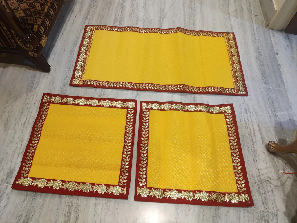 Really happy with this set of Uparnas – the color and quality are amazing, and the design looks beautiful during poojas. I also bought chowkis and mats from here, and they were just as good. Great products overall, highly recommend! 🙏